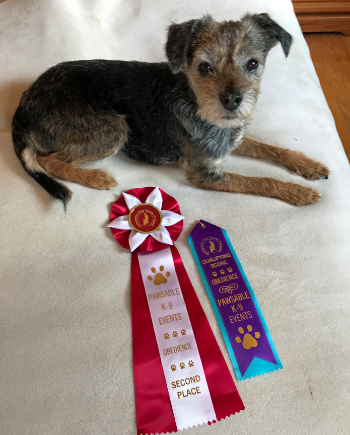 She earned her first leg in Rally 2A and 2nd Place, and two legs in Novice B obedience, with two 3rd Places!