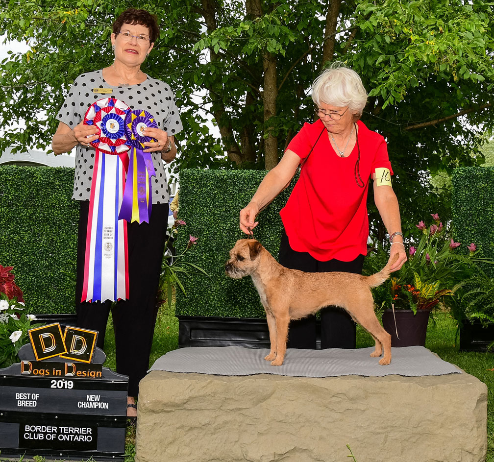 Lola took Winners Bitch at the Border Terrier Club of Ontario Specialty in Long Sault, ON on August 23rd under breeder judge Laurale Stern and that was enough to finish her Canadian Championship.