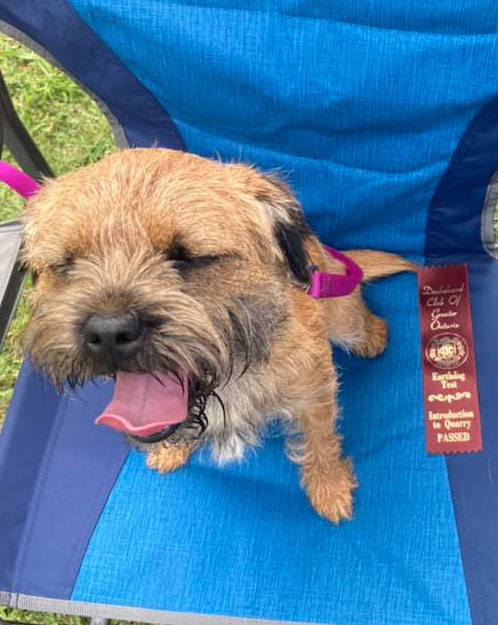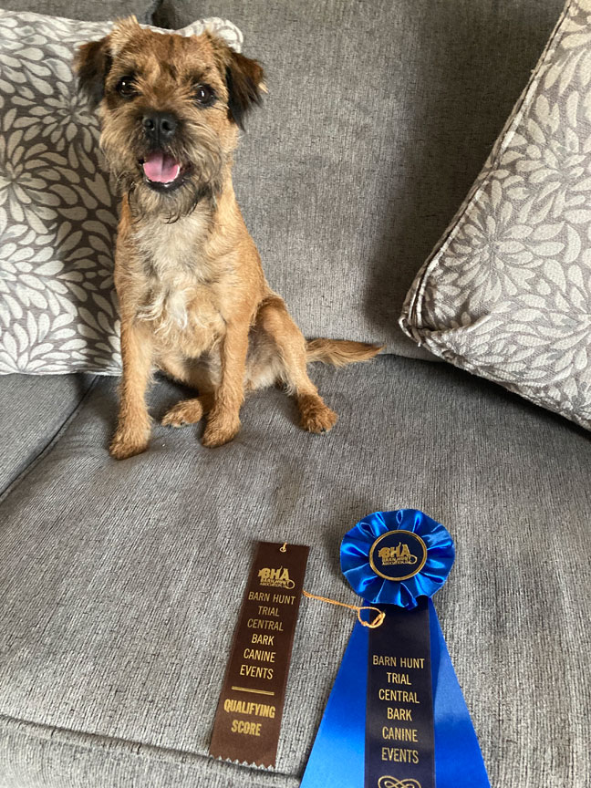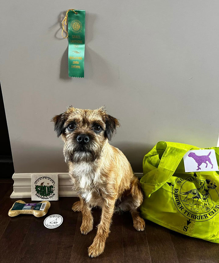 Nimbus once again showed her inner terrier off to perfection. She aced her AKC Novice Earthdog Title in two straight runs.