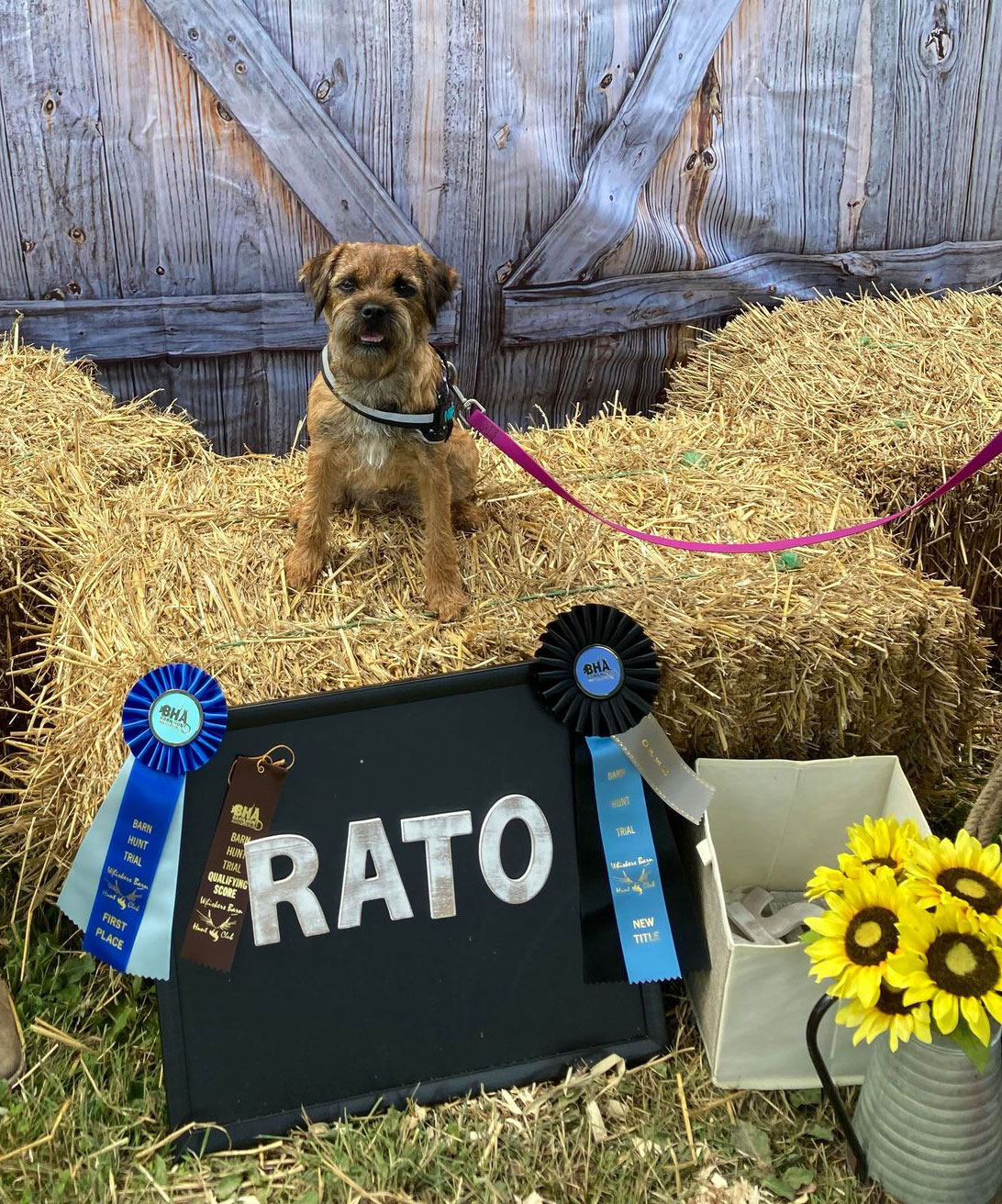 It certainly didn’t stop Nimbus from finding the rats. She earned her Novice Barn Ratting title (run times of 4.03 and 1.95 secs) and 2 more legs towards her Master Brush Hunting Title (24.49 & 1.30).
