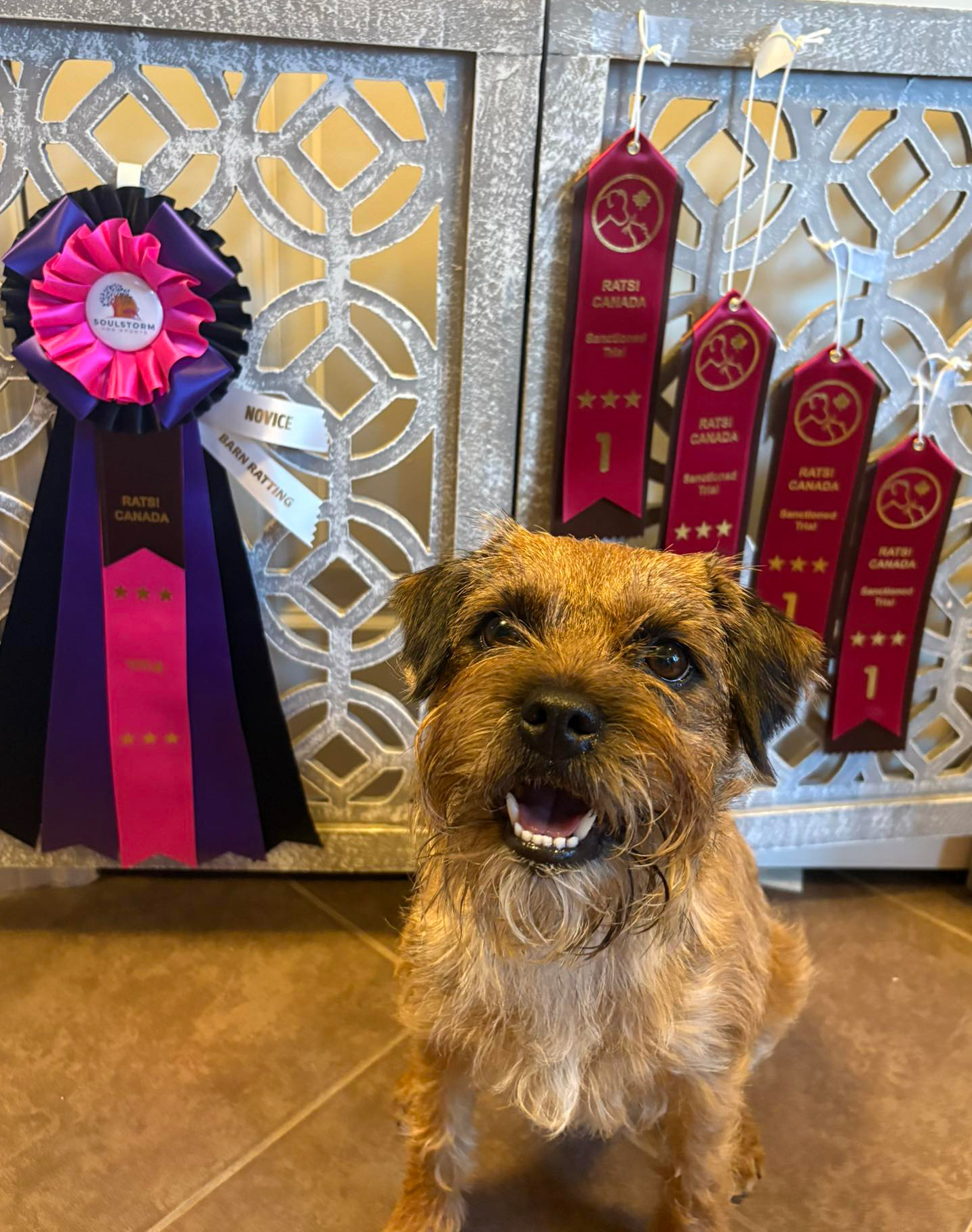 As predicted, Nimbus returned to Barn Hunt and left no doubt in anyone's mind that she knew what she was doing, with a second and two first place finishes including a High in Class, this little girl absolutely rocked her title. All accomplished under Karen McClean from Okotoks, AB