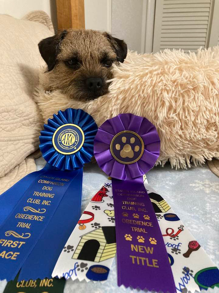 Olive completed her AKC CD title with a 193.5 and first place under judge Charles Marcantonio in a very challenging venue
