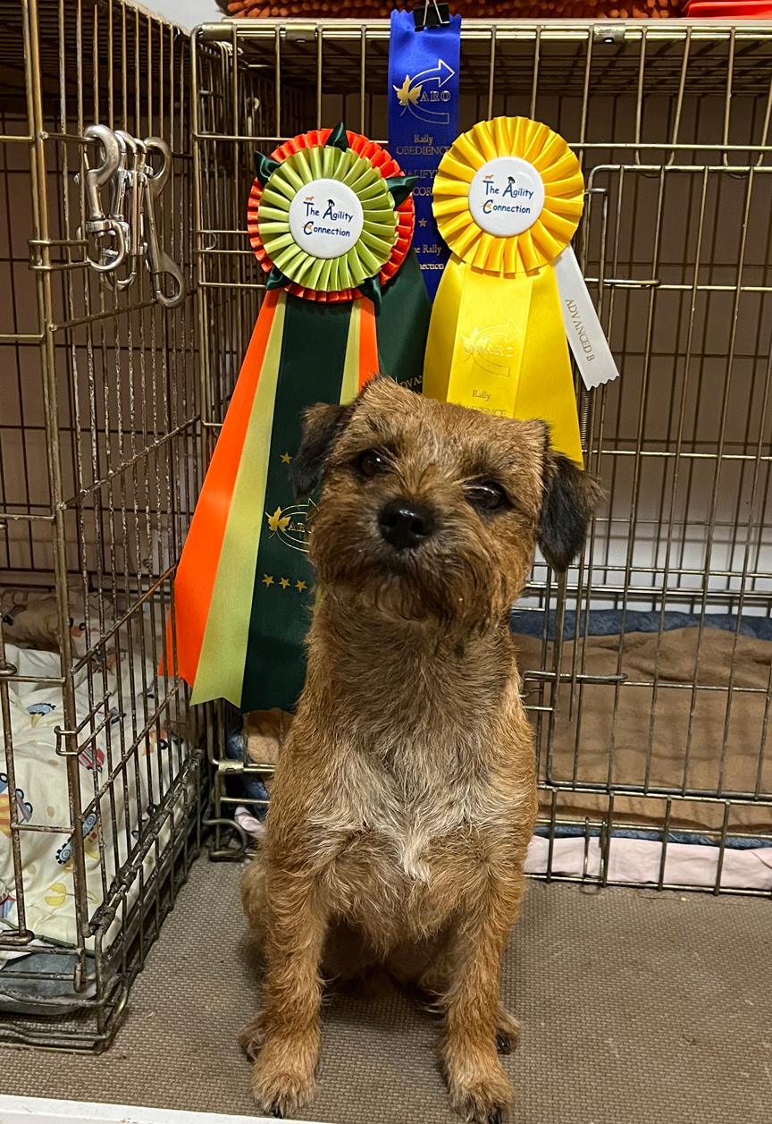 At the Ottawa Kennel Club Rally Trials on November 25-26, 2023, Pickles finished her Rally Excellent Titles under Shelly Lyck (scores 80 and 97) and Pat Hunt (score 94). She went on to earn a bonus leg under Pat (score 95).
