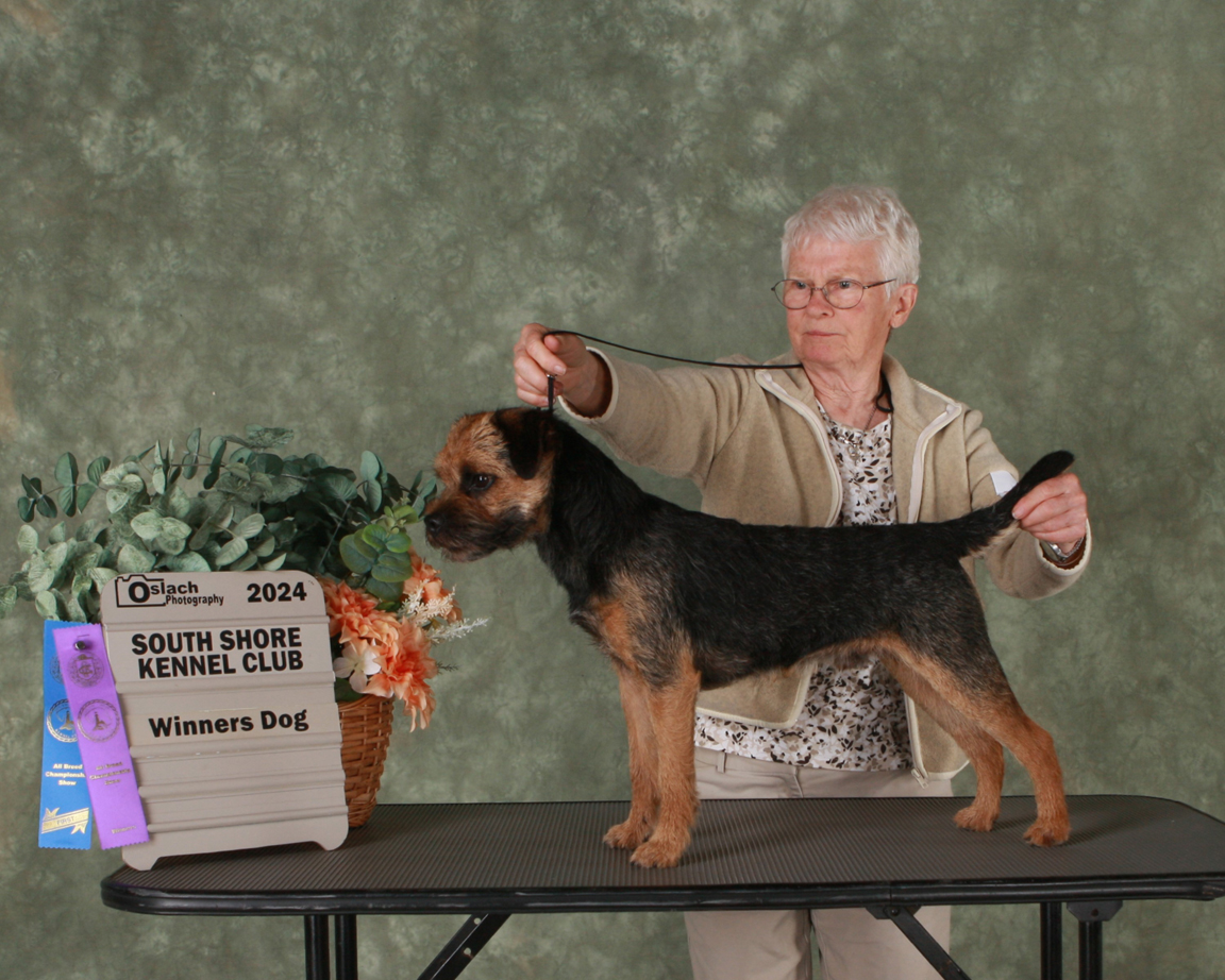 both judges were apleasure to show to as both know how to correctly span and pelt a Border Terrier.