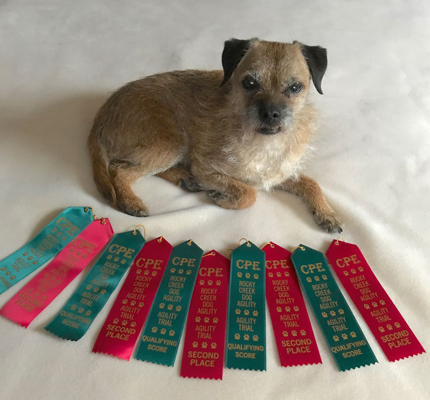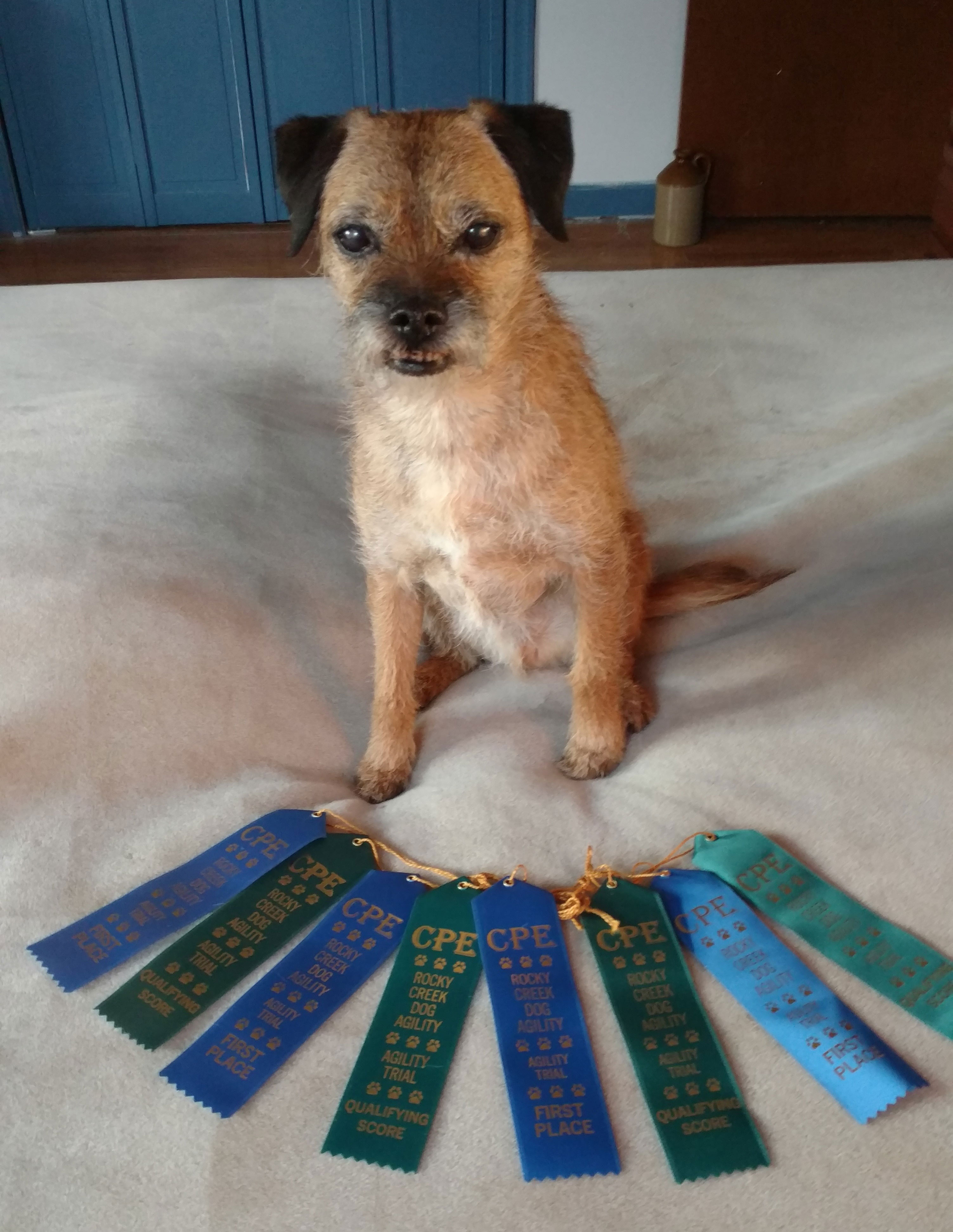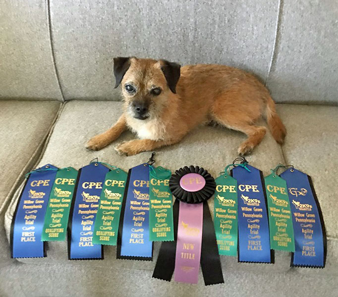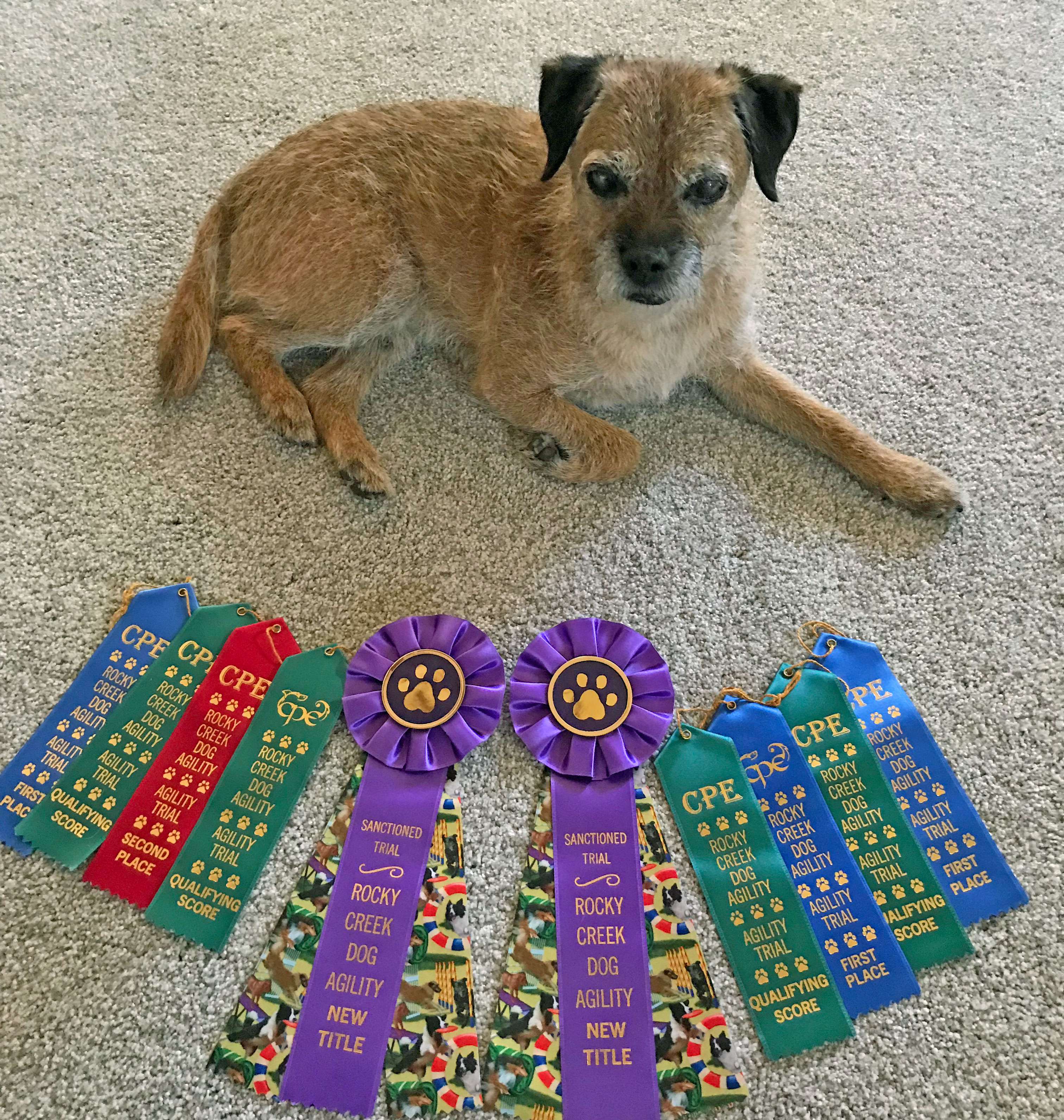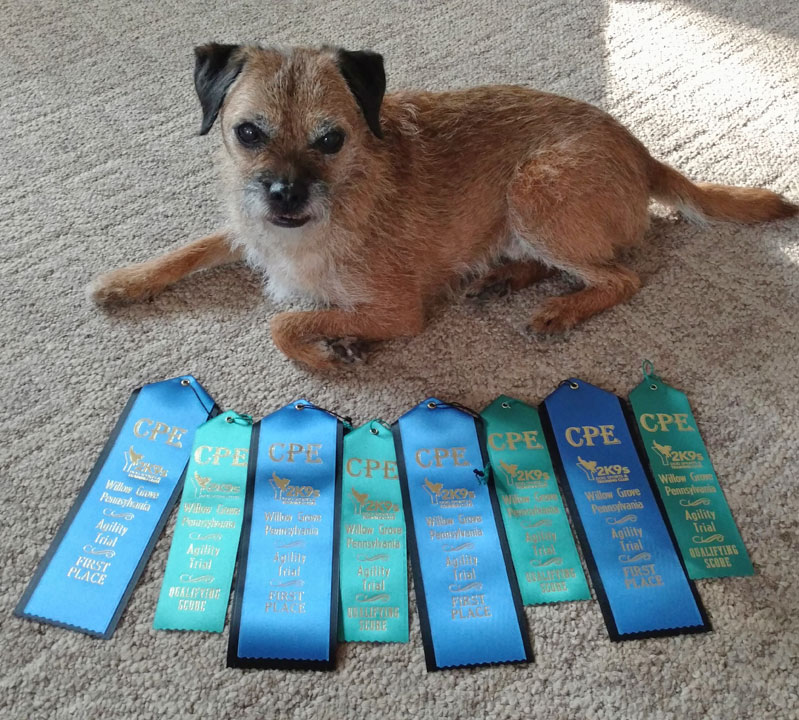 "The trials hosted by Y2K9s, under Judge Mike Conroy, Fred and I qualified in our Standard run (our first of the day) to complete our CT-ATCH (CPE Enthusiast Agility Trial Championship)! Plus he got 1st Place!