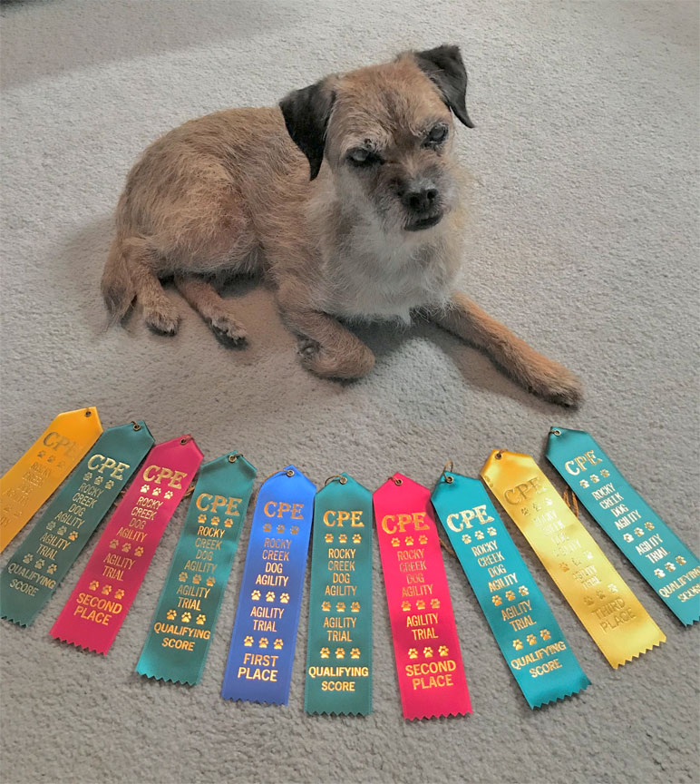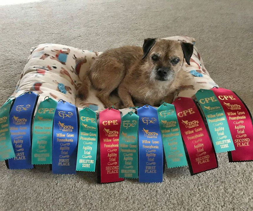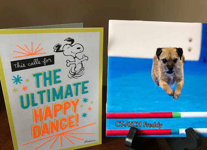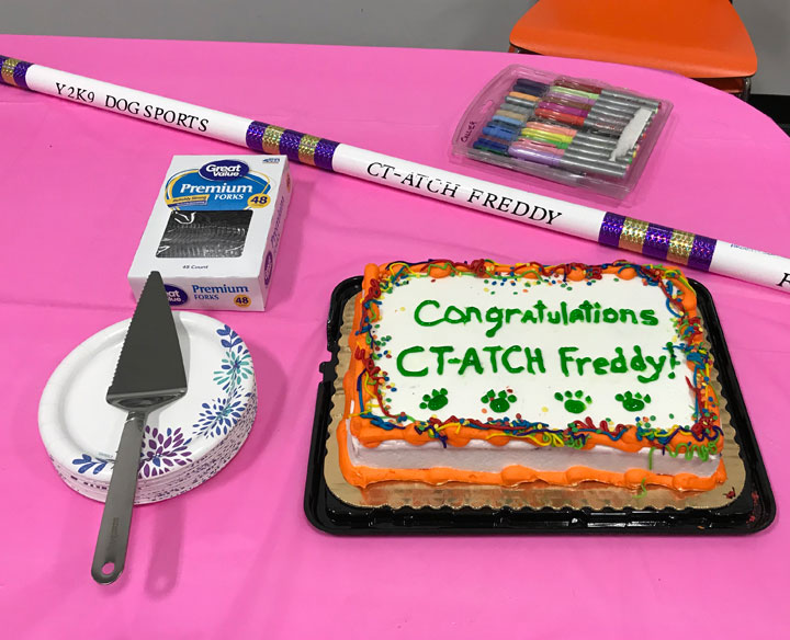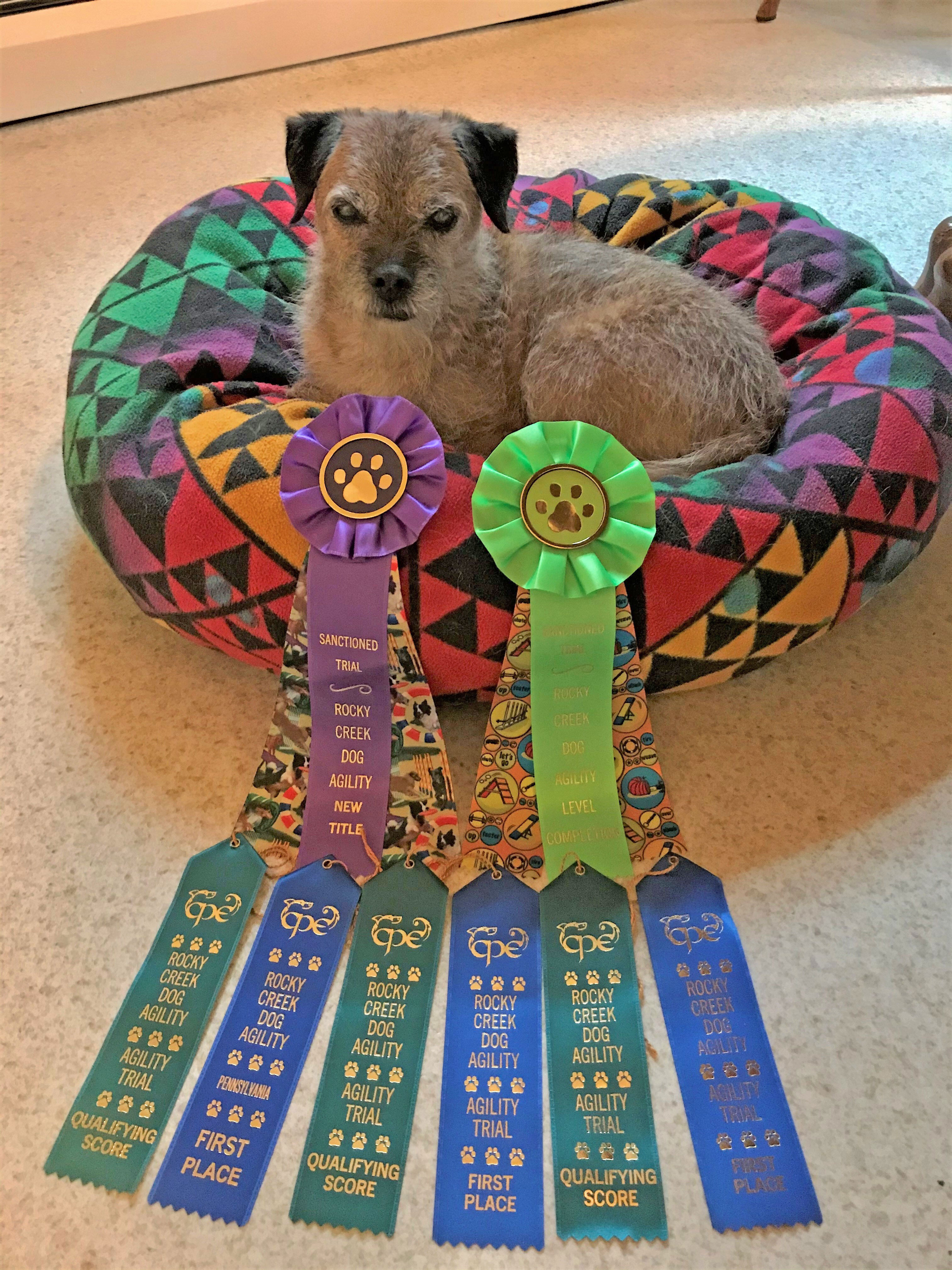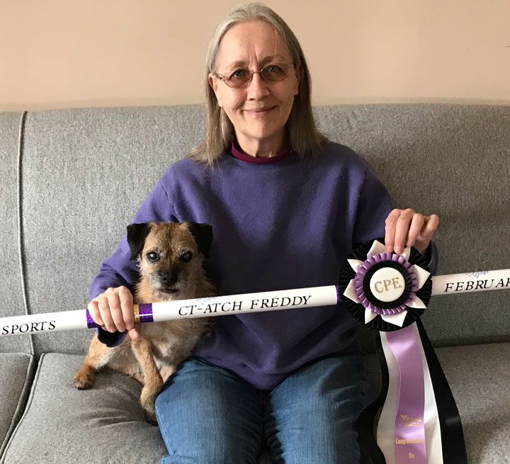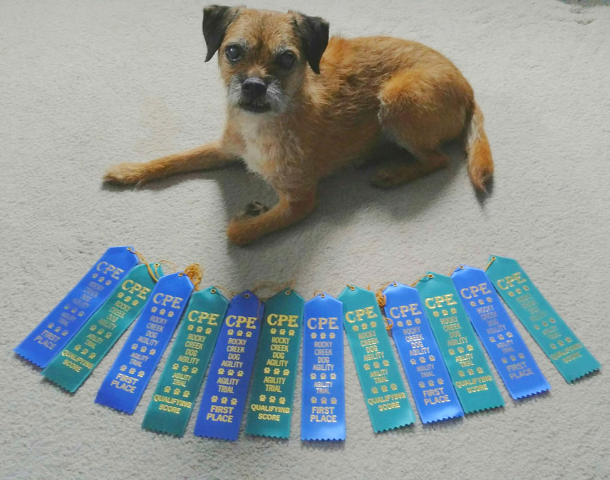"The trials hosted by Y2K9s, under Judge Mike Conroy, Fred and I qualified in our Standard run (our first of the day) to complete our CT-ATCH (CPE Enthusiast Agility Trial Championship)! Plus he got 1st Place!