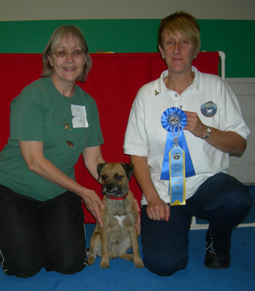 Judge Annette Murphy-Wales -It was Fred's turn to go first this time. He must have known we were in the "B" class because he gave the most awesome performance yet. I just kept talking to him and moving at a quick pace and he did everything I asked beautifully. His attention was amazing -- I just kept saying "you watch Mommy" and he did. He did have a few crooked sits because there were quite a few pivots in both directions, but no matter. Our bonus exercise was heel, call to front, side step call to front. Well, the first front was the most beautifully executed one any of my dogs have ever done! He sat perfectly centered at my feet looking up. When I stepped sideways and called him, he repeated it exactly. Everyone applauded! I told him he finished in high style! I gave him several treats at that point before we left the ring.