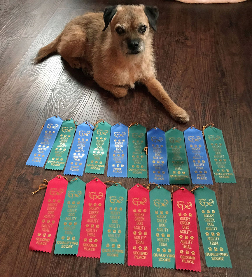Ribbon-wise, it wasn't a perfect weekend, but for me and Freddy it was. We spent quality time with each other and enjoyed the company of our agility friends. We hadn't done 10 runs in quite a long time, yet we accomplished so much!