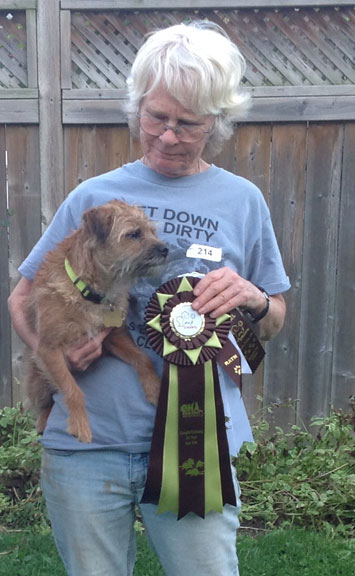 She racked up a bonus leg at the Northeast Border Terrier Club ED test the following day (Judge Blue Sandrock).