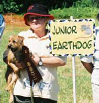 Hazel cooperated with surrogate handler, Pam, to become the first of the three Roger/Scrimmage "pups" to qualify in Senior at the New Jersey Beanfield Earthdog Club ED Test in Crosswicks, NJ on June 02, 2007 (Judge Jean Clark) and in doing so completed her AKC Senior ED Title.
