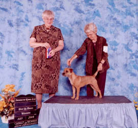 Hazel added three more points to her tally going Winners Bitch and Best of Winners at the Atlantic Terrier Association Specialty in Halifax Nova Scotia on September 03, 2004. The judge was Peggy Beisel-McIlwaine from the US.