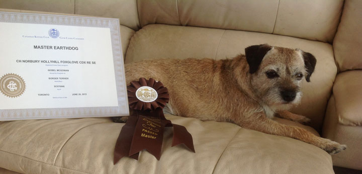 Maisie completed her Canadian Master Earthdog Title at the Border Terrier Club of Ontario Earthdog Test on June 20th, 2015