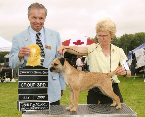 Maisie capitalized on her handy sized and wrapped up her Canadian Championship at the Fredericton Kennel Club shows (July 25, 26, 27, 2008) with Best of Breed and a Group 3rd under John Ross at the BTC Booster on Friday then Best of Breed on Saturday (judge Margaret Jones) and Best of Breed and a Group 4th on Sunday (judge Susan Badick).