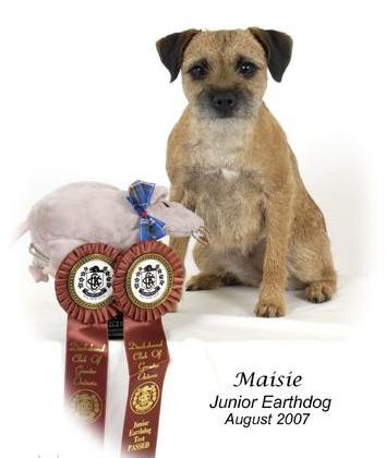 At the Finger Lakes KC ED Tests in NY on July 18/19 2009, Maisie knocked off her AKC Junior Earthdog Title