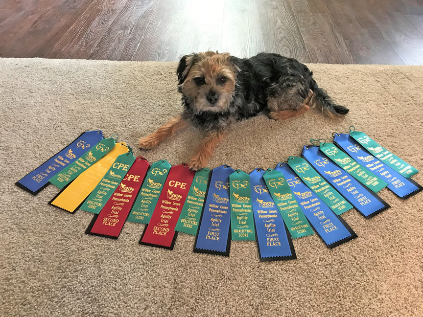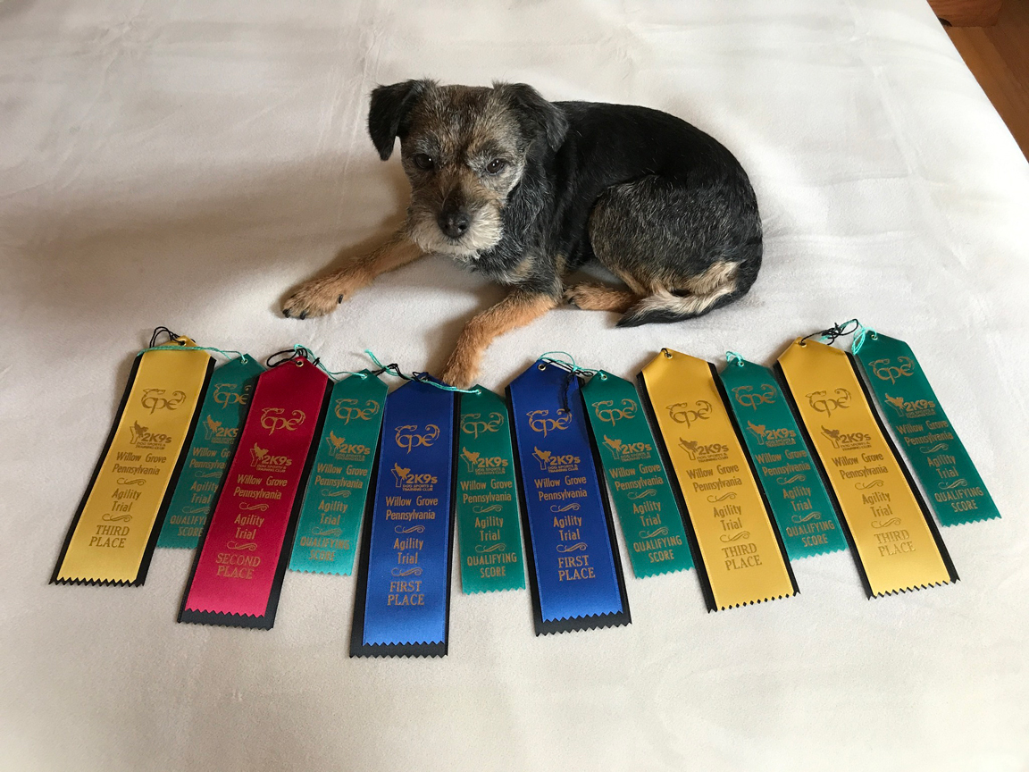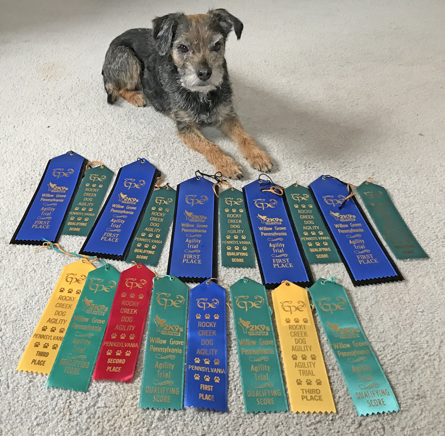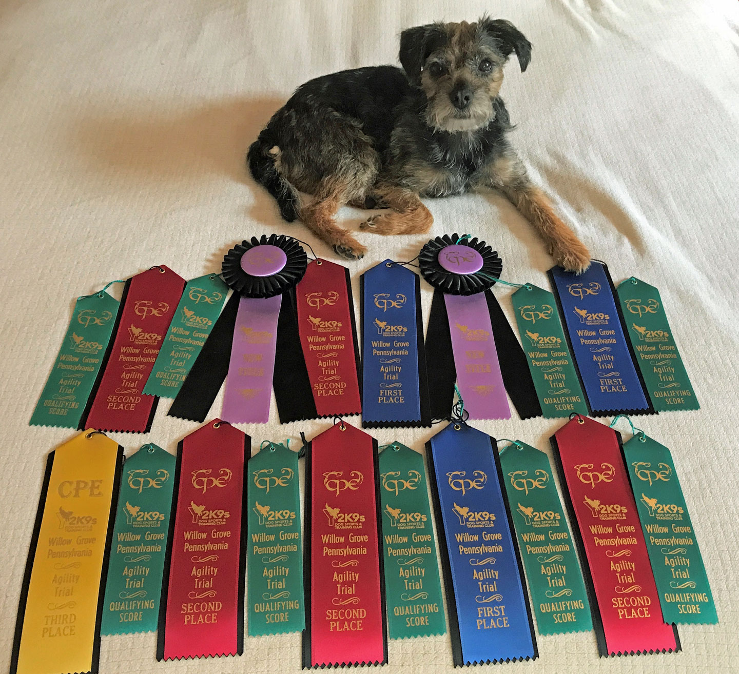 Rosie had a fun weekend at Y2K9s' CPE agility trials! She qualified in 8 out of 10 runs!