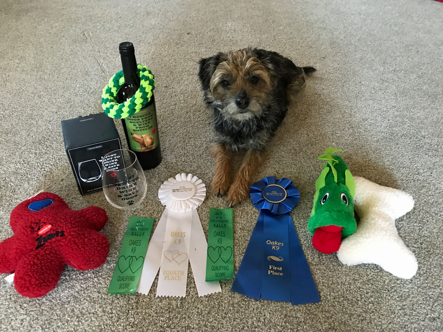 Rosie was entered her in both the morning and afternoon trials, with one run each in rally and obedience in each trial.