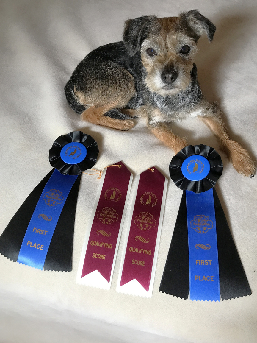 "Saturday we started with Standard and aside from a few run-offs to visit the ring stewards, she qualified with 1st Place! I was so proud of her! That Q made my entire weekend!