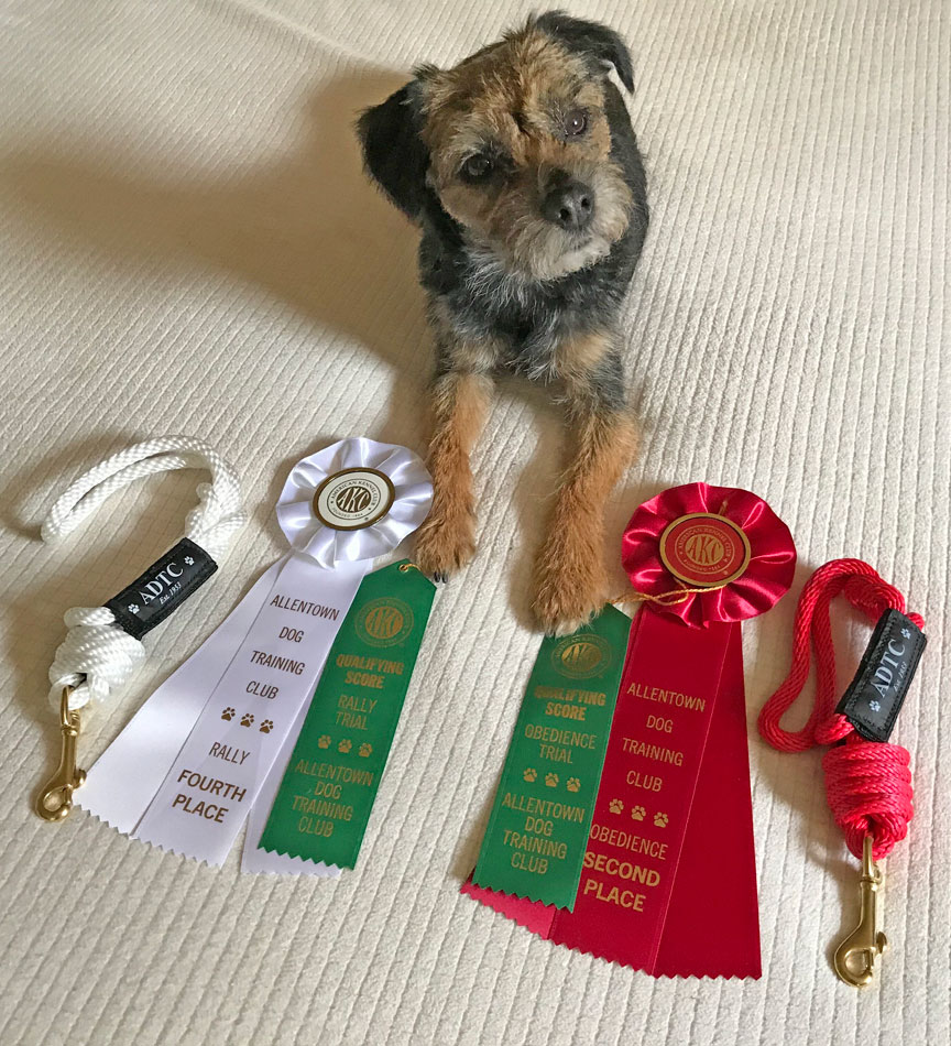 She earned her first leg in Rally 2A and 2nd Place, and two legs in Novice B obedience, with two 3rd Places!