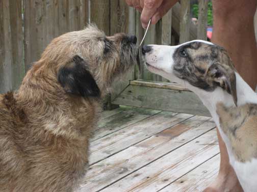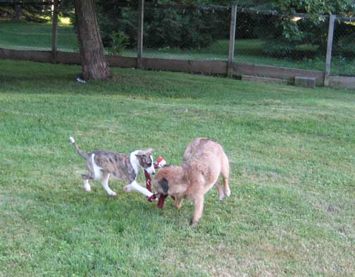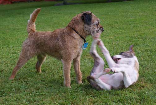 Gizzie and Gremlin play double "decker" dogs
