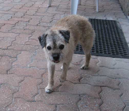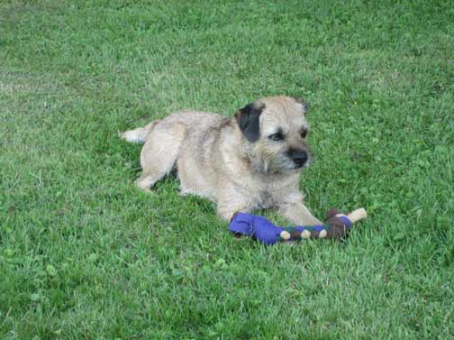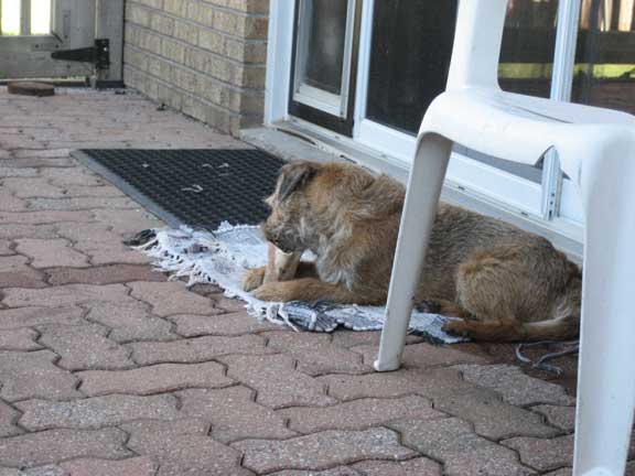 Sunday morning and Roger enjoys a good chew on the patio...