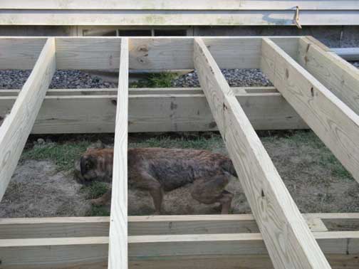 Parker, stepping out under the boardwalk deck