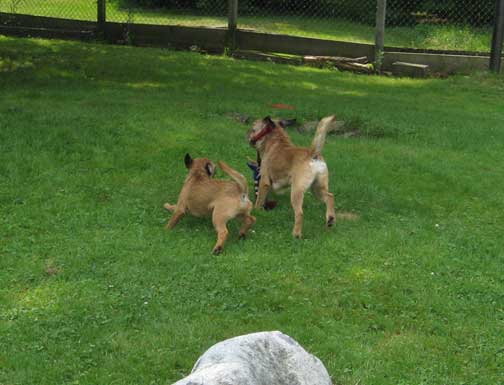 "Stand on Guard for Thee" Gizmo enjoys the warm weather while Gremlin keep a watchful eye