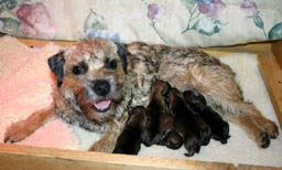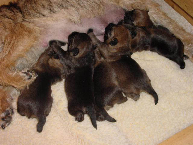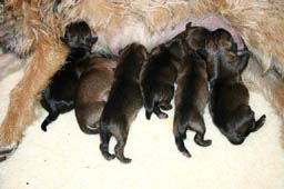 Anna Fraser's Lexi (Roger - Copper) gave birth to 3 boys and 3 girls on December 13-14, 2004. Dad is Am.Ch. Towzie Tyke's Jed JE. Lexi is co-owned with Megan McGovern Our best wishes to Mom and pups