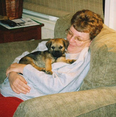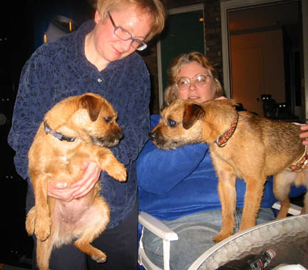 As most of you know, Bonus - one of the "unexpected" pups in the Lexi-Jed Litter has gone to live in Maine with Eric and Dora and their BT Lizzie. Lizzie is a half sister to Roger - Bonus' grandfather. Anna F and Ann R made the long trek from Nova Scotia to Maine with Bonus.