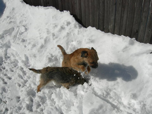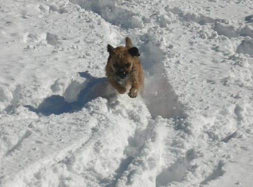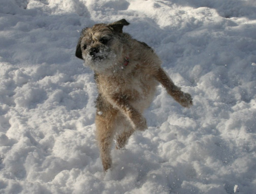Canadian snow bird taking off? No - just Ellie flying high with the joy of a Nova Scotia winter - they have also had their fair share of the white stuff this winter.