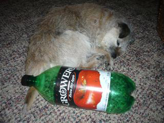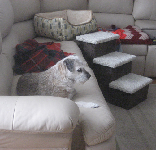 Bramble's attempt to imitate grandpa and great uncle meets with Winston's approval. Though I'm not sure that I would recommend a Border jaw as a "foot rest"