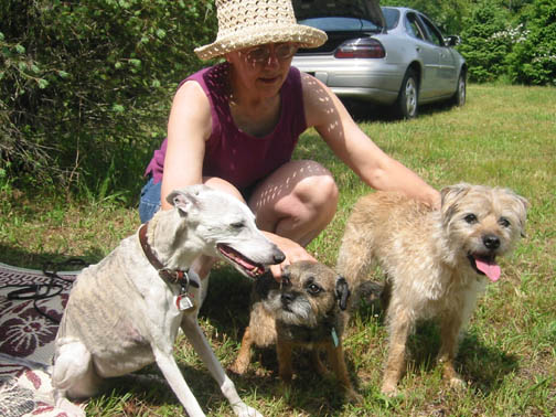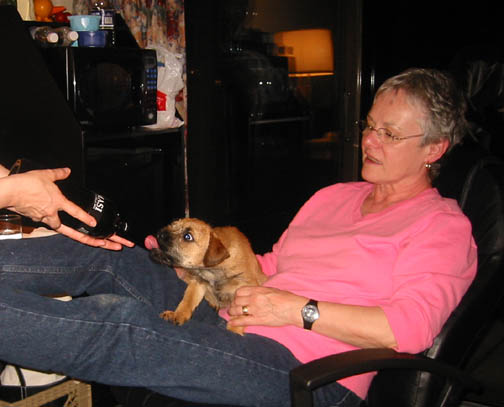 Gimli (1990 Remy - Pepper litter), sister to Penny, Sam, Tangle & Badger, came to visit with proud and loving caregivers Gord & Karen Lorimer and their daughter Lindsey. Looking well and happy, she is a credit to their care and her Lothlorien genes