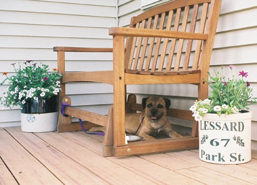 Nipper - a senior soaking up the sun under the playful eyes of youth