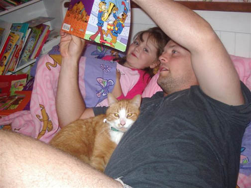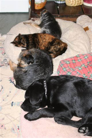 While we were down in New Jersey, one of the Vet Tech's where Mr. Marmalade was boarding took a liking to him and - hearing he was available for adoption - took him home to meet her husband, three children, senior Sheltie and.... a cat. We are happy to report (and show) that Mr. Marmalade (now Charlie) is doing just fine.