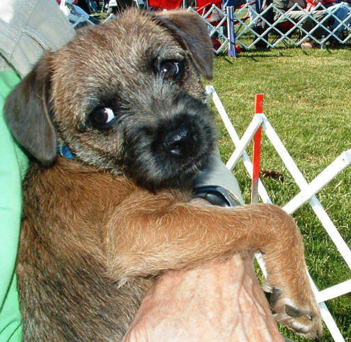 "I'm bored!" Teazle takes a dim view of dog shows as a spectator sport.