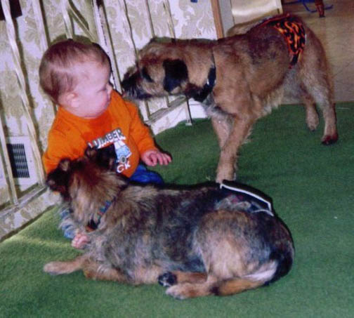 Colin and Harry, baby sitting little Luke. (Or hoping for crumbs!!)