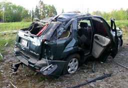 On the way back to NB/NS from the BTCO ED Tests the two Anna's and Mel witnessed a horrific accident. The trailer and car were totalled, the two dogs in the car walked away with barely a scratch - they were both crated. Kennelaire crates may be expensive but well worth the money.