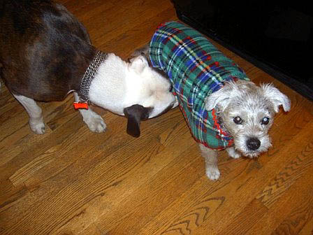 Great news - Harry can stop envying Django's swish togs - he will be getting a new coat of his own to replace the one he left behind at the grooming parlour - click on the image to see how his friends rallied round.