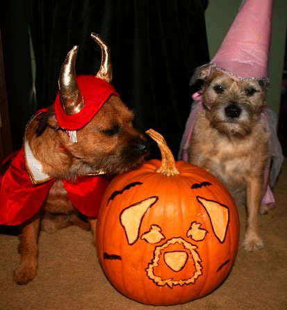 Halloween trickery - Geordie and Ellie and pumkin makes three