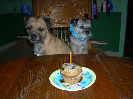 "You really want me to share?" Sophie looks mournful while Freddie eyes the birthday muffin hopefully!!!