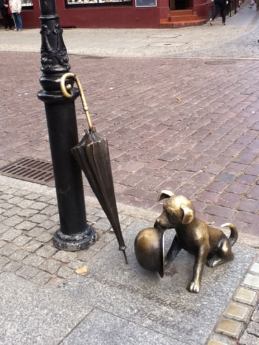 dog, hat & umbrella to the Market Place in Torun.