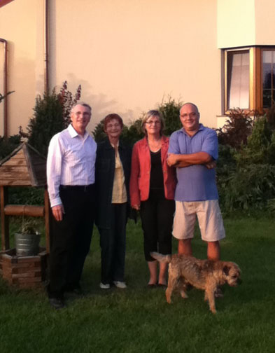 Borders at their lovely home. That's Ernest sneeking into the photo.