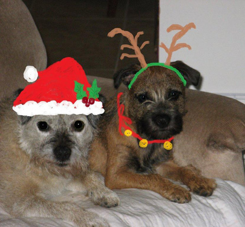 Isobel with Maisie, Gordie and [camera shy] Keeley (remembering Tilley and the Schnauzers)