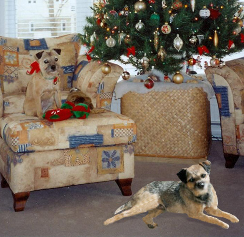 Chris & Jeff with Sophie and Freddie (remembering Roscoe and Spunky)