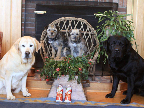 Deenie & Stephen with Bumble, Bria, and the Labs Cheddar and Onyx (remembering Vixen and Crooker)