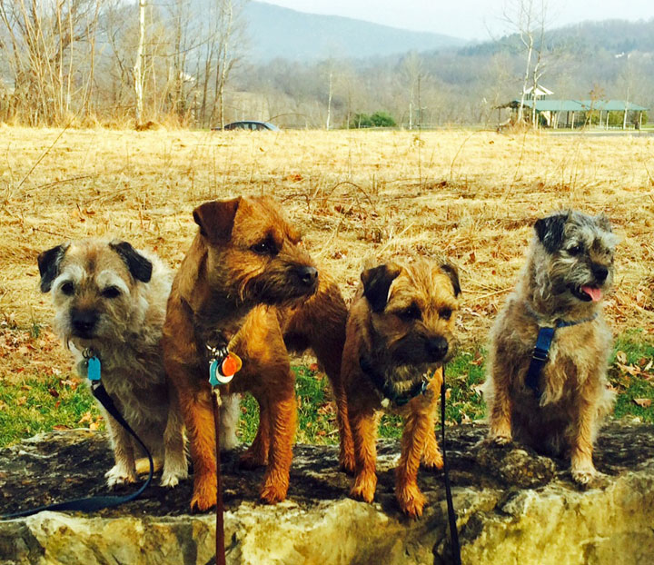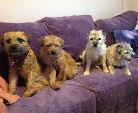 Amanda with Ida, Reen and the Bandersnatch Borders (remembering Peter, Tux and Talon)