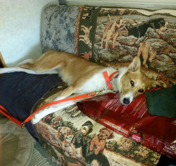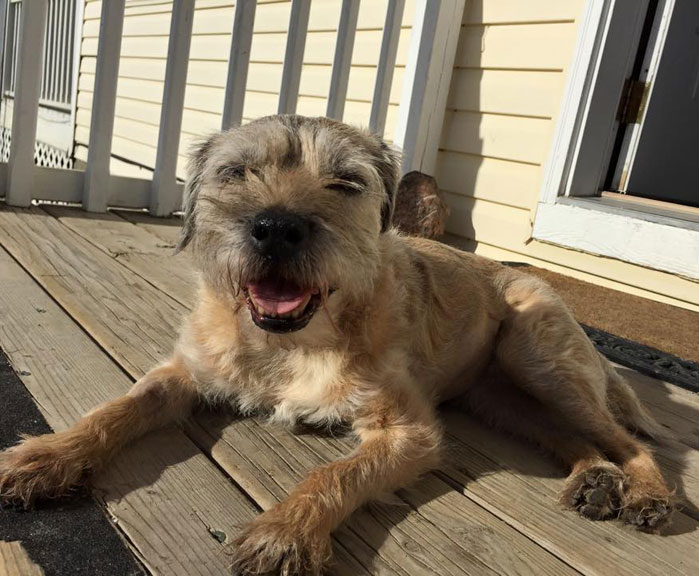 Lexi soaking up some winter sun and proving once again that there is "no place like home"