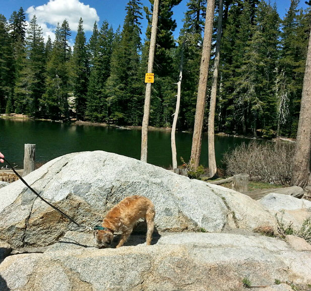 Scrimmage is more interested in critter smells than the Sierra Nevada scenery
