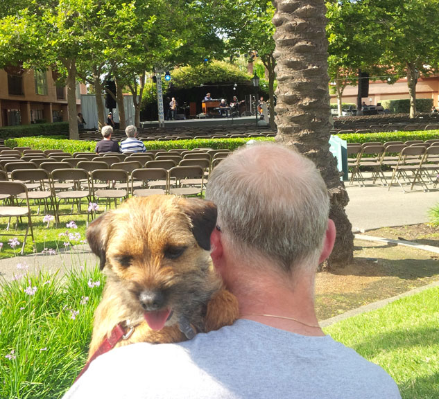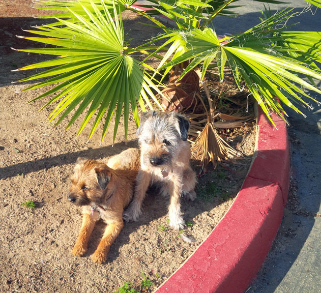 Chris & Jeff with Sophie and Freddie (remembering Roscoe and Spunky)