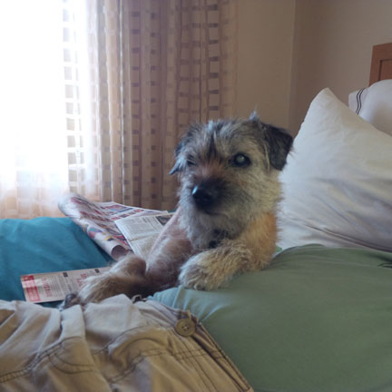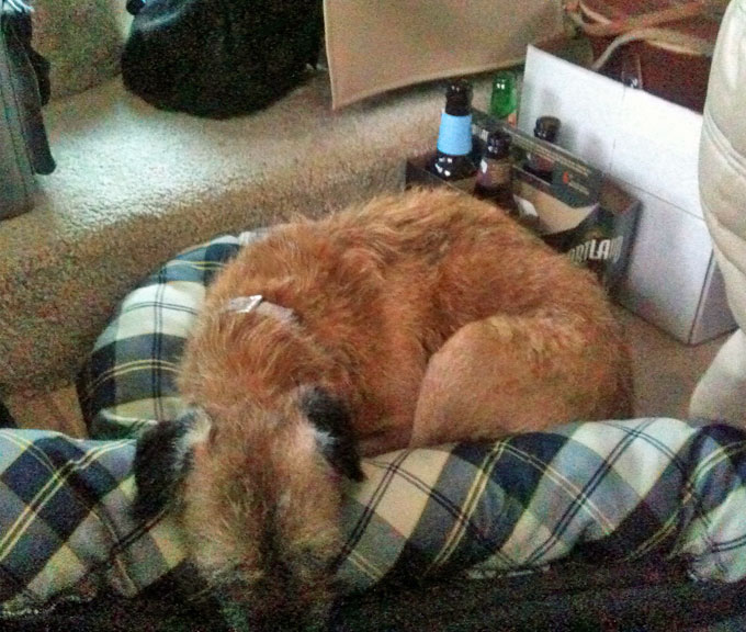 Zeke says there's nothing like a comfy bed and a cold beer....