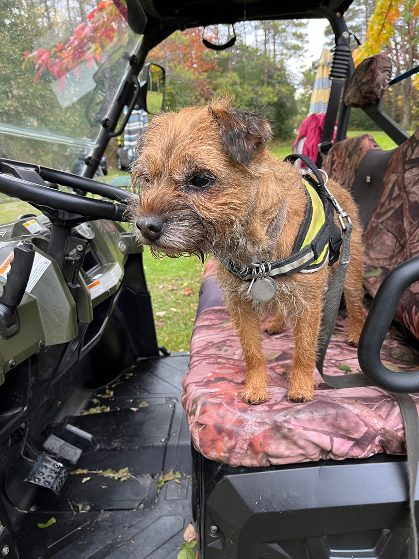 Digger enjoyed riding the Ranger with me each morning in Sunderland as we went out to check and set the dens